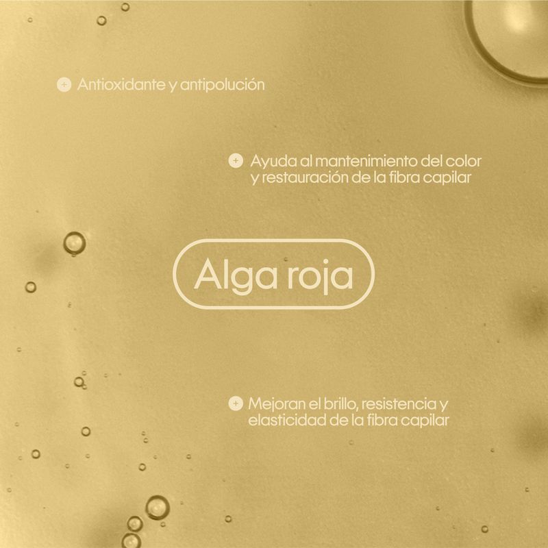 Fórmula altamente concentrada con Alga Roja. Sella las cutículas para que el color no se desvanezca con las lavadas y se mantenga vibrante, además de restaurar la fibra capilar y aportar resistencia al cabello teñido.