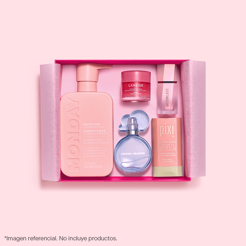 Esta caja incluye: Papel de seda blanco, sticker y tarjetita para dedicatoria. No incluye productos.