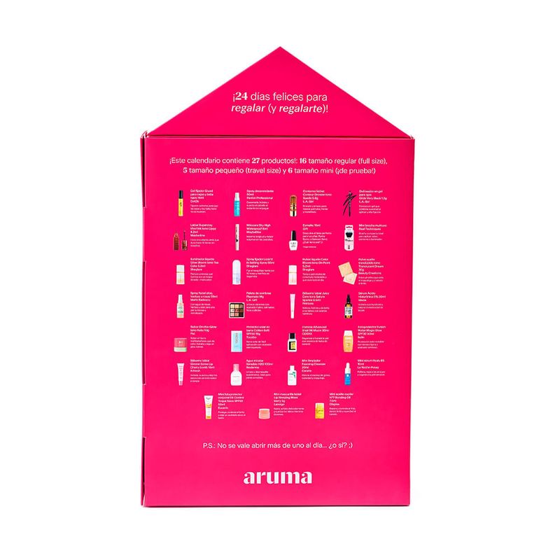 27 productos: 16 tamaño regular (full size), 5 tamaño pequeño (travel size), y 6 tamaño mini (¡de prueba!)