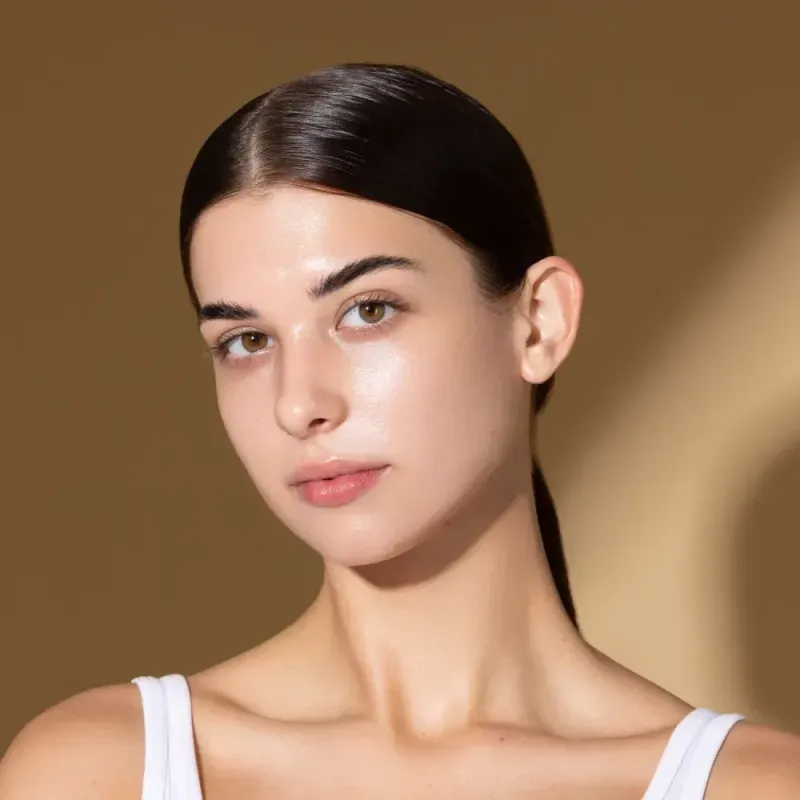 1. Aplica una pequeña cantidad de puntos del contorno líquido en las áreas del rostro que deseas definir, como en los huecos de las mejillas, a lo largo de la línea de la mandíbula y en las sienes.