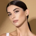 2. Inmediatamente después, utiliza una brocha densa, una esponja húmeda o las yemas de tus dedos para difuminar el producto con suaves toques hasta que se integre perfectamente con tu piel.