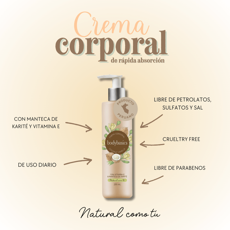 Crema Corporal Bodybasics Coconut Vanilla x 230ml En Caja