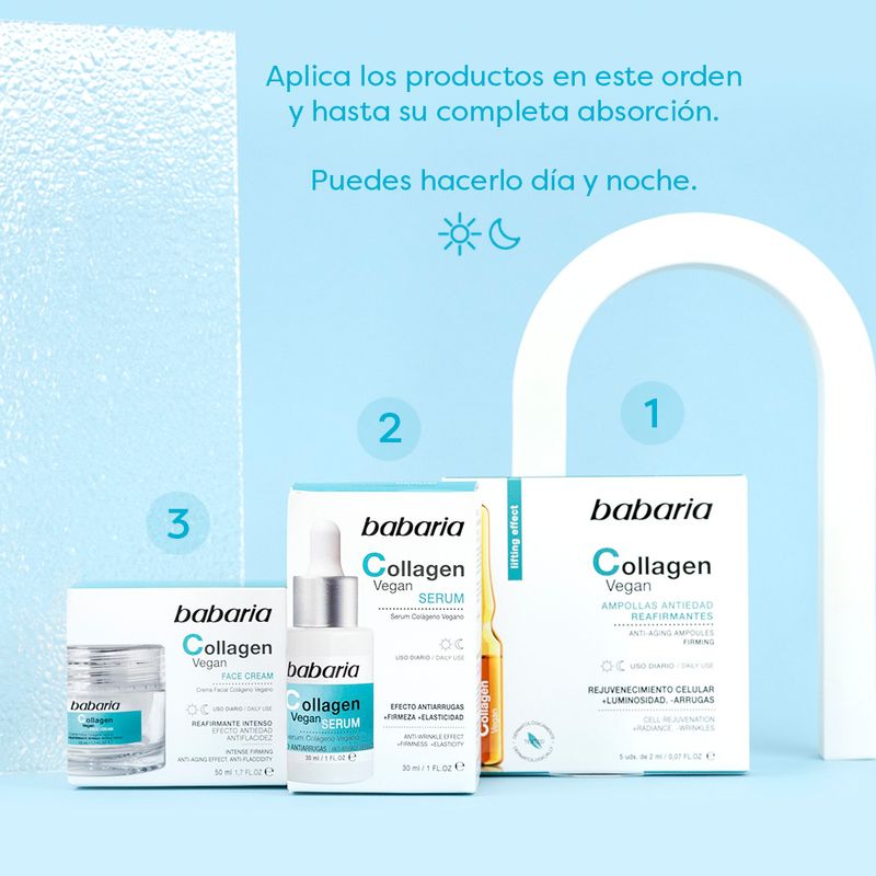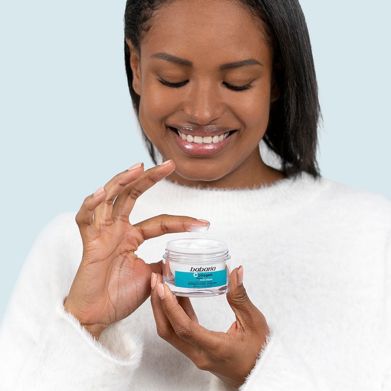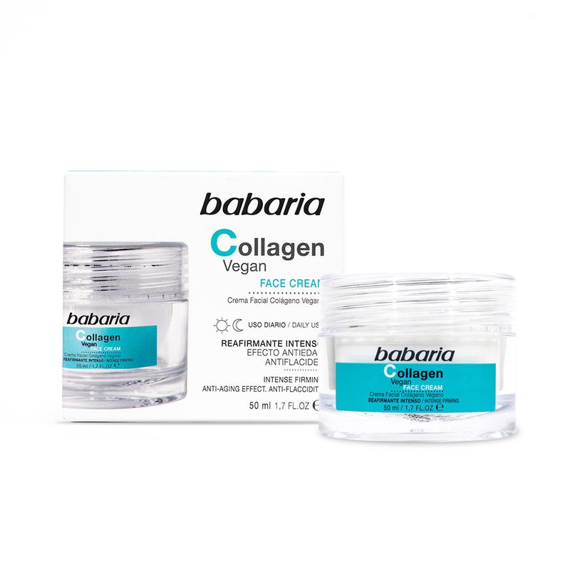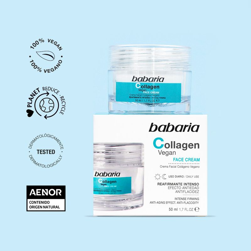 La crema facial Collagen Vegan de Babaria corrige todos los signos de la edad, como arrugas y patas de gallo, rejuveneciendo visiblemente la piel.