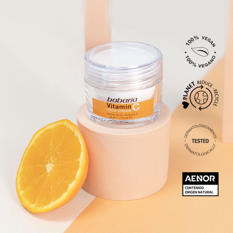La Crema facial Vitamina C combina un activo innovador derivado de la Vitamina C y la Vitamina E, por su poder antioxidante, aportando luminosidad al rostro. Además, protege frente a la Luz Azul proveniente de los dispositivos móviles, y frente a la polución. Recomendada para todas las edades y para pieles grasas.Para un efecto más eficaz, utilizar junto con el Serum de Vitamina C Babaria.