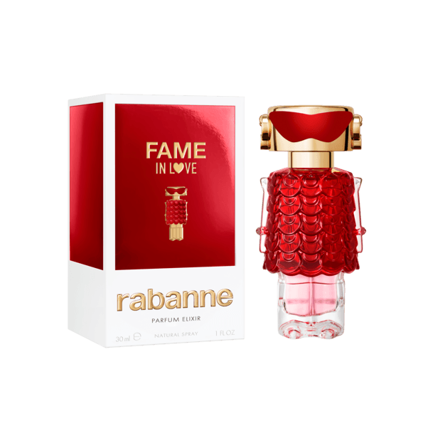 Descubre la fragancia femenina más deliciosa de FAME con el inconfundible toque Rabanne: FAME IN LOVE Parfum Elixir. Un nuevo lenguaje del amor para la chica Rabanne más juguetona, realzado por una nota de fresa súper jugosa. Porque el amor es rojo.