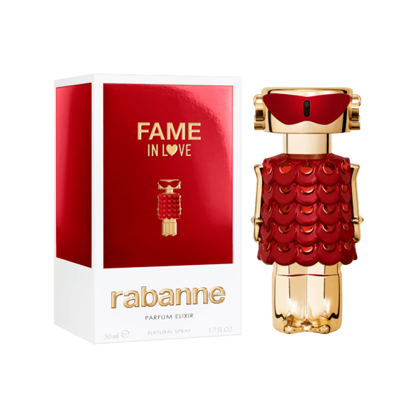 Descubre la fragancia femenina más deliciosa de FAME con el inconfundible toque Rabanne: FAME IN LOVE Parfum Elixir. Un nuevo lenguaje del amor para la chica Rabanne más juguetona, realzado por una nota de fresa súper jugosa. Porque el amor es rojo.