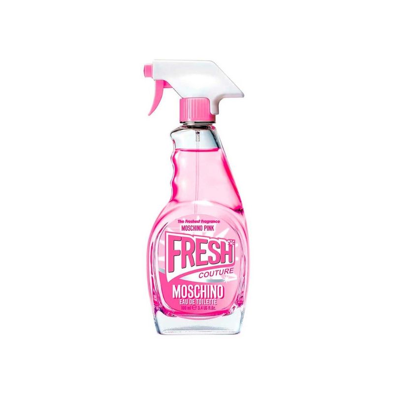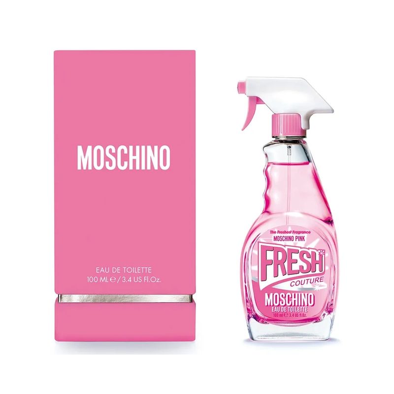 Pink Fresh Couture es una fragancia femenina de la familia olfativa floral frutal, lanzada en 2017. Esta fragancia es una reinterpretación del icónico diseño de Moschino, presentándose en un frasco que imita una botella de limpiador doméstico, esta vez en un tono rosa vibrante. La esencia captura la frescura y vitalidad de la primavera, combinando notas cítricas, florales y amaderadas para ofrecer una experiencia olfativa alegre y sofisticada.Notas de salida: Toronja rosada (pomelo), grosellas negras (cassis) y lirio de los valles (muguete).Notas de corazón: Rosa, granada y jacinto rosa.Notas de fondo: Almizcle, ambroxan y cedro