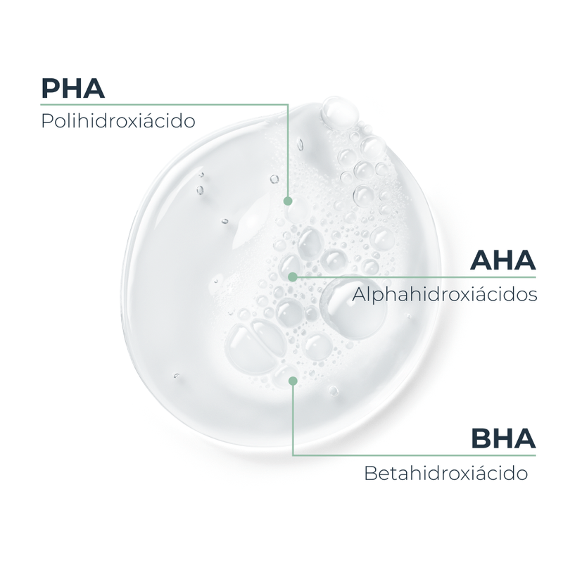 1. Anti-Manchas: Complejo exfoliante de Ácidos AHA/BHA/PHA que ayuda a eliminar las células muertas de la piel y reducir las manchas (hiperpigmentación postinflamatoria).