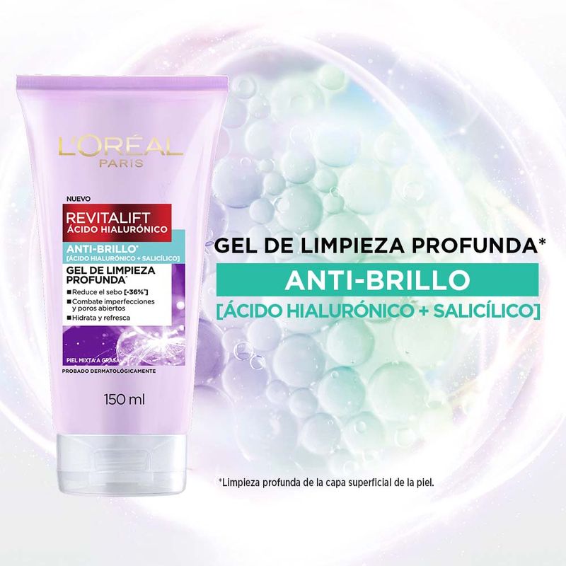 CUIDADO DE LA PIELLimpiezaLimpiadores y JabonesGel Limpieza Oil Control Revitalift Ácido Hialuronico Dermo Loreal Paris