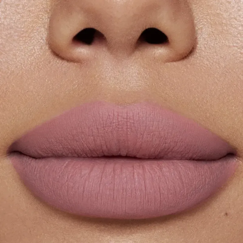 3. Deja que el labial se seque por completo durante uno o dos minutos, sin frotar los labios, para sellar el acabado mate de alta pigmentación y asegurar que no se transfiera.