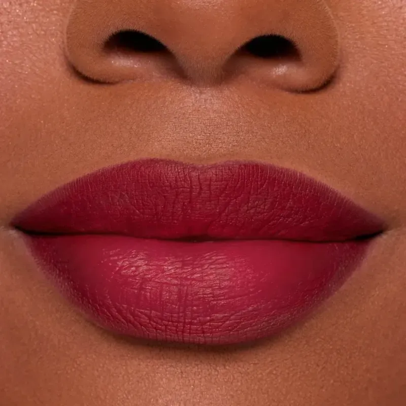 3. Deja que el labial se seque por completo durante uno o dos minutos, sin frotar los labios, para sellar el acabado mate de alta pigmentación y asegurar que no se transfiera.