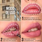 Paso 1: Aplica el color labial líquido desde el centro del labio superior hacia los extremos, siguiendo el contorno de la boca.