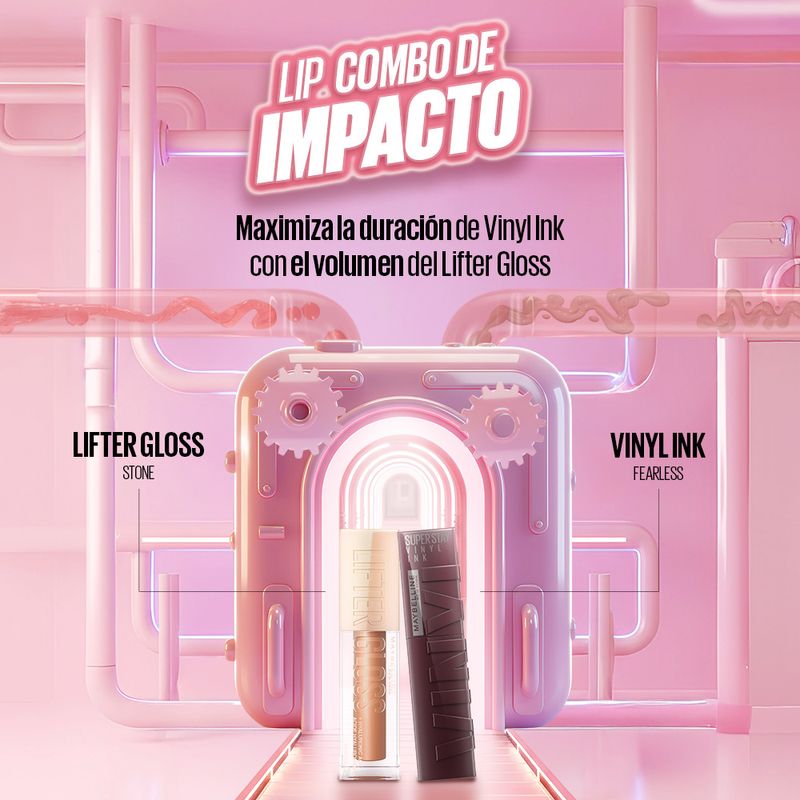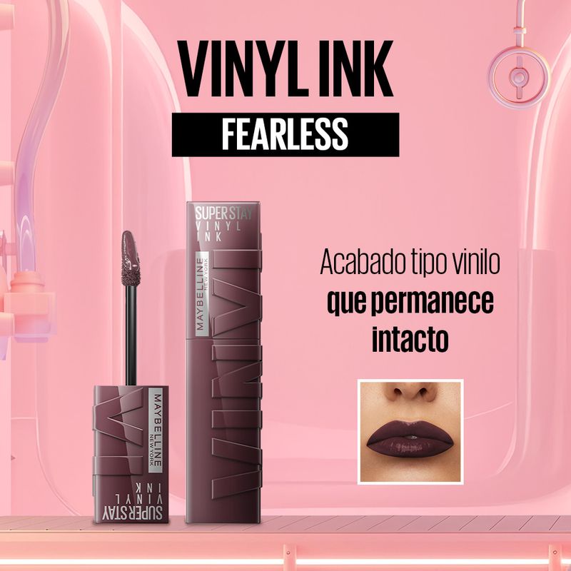 Labial Líquido Súper Stay Vinyl Ink Tono Fearless: Este labial nude te brinda un color intenso y brillo que no se transfiere hasta por 16 horas! Modo de uso: Agita el labial por lo menos 15 segundos antes de aplicarlo para activar su fórmula. Utilizael aplicador de alta precisión para colocar tu color favorito empezando por el centro del labio superior. Trabaja desde el centro del labio hacia las comisuras, siguiendo el contorno de tu boca. Luego, desliza el color por el labio inferior. Deja secar por unos minutos y ¡listo!
