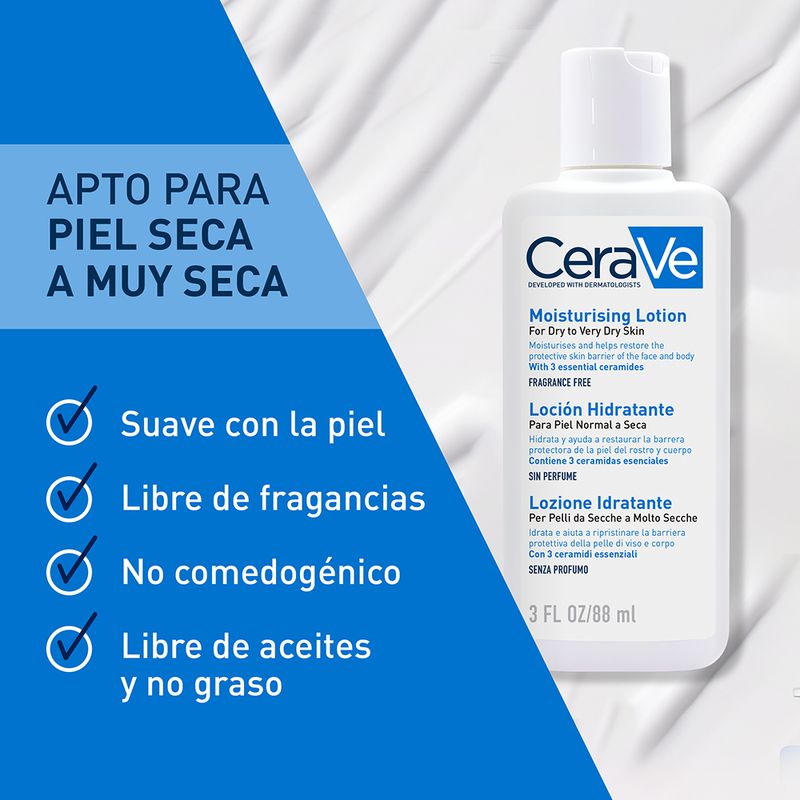 La Loción Hidratante de Rostro con FPS 30 de CeraVe hidrata y repara la barrera protectora de la piel, mientras la protege de los rayos del sol. Contiene 3 ceramidas esenciales, Ácido Hialurónico hidratante y Niacinamida calmante, además de la Tecnología MVE para proporcionar una hidratación por 24 horas. Es de fácil aplicación, y ayuda a tener una piel suave y restaurada. Fórmula no comedogénica, es decir, no obsturye los poros. Libre de fragancias y parabenos. Contradiccciones y/o restricciones: Evitar el contacto con los ojos. En caso tal, enjuagar con abundante agua