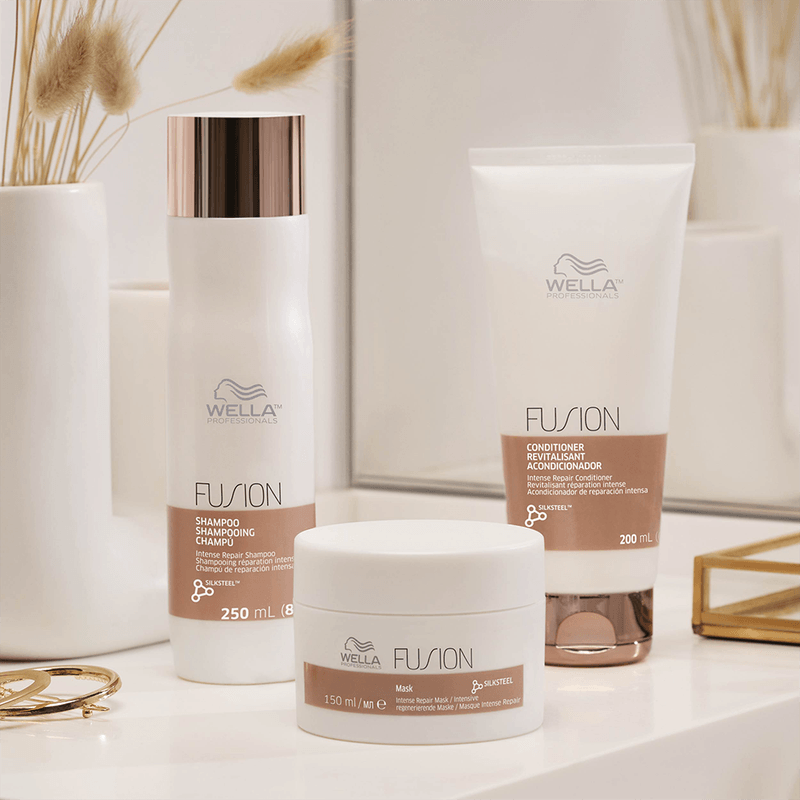 Proporciona la máxima protección al cabello frente a la rotura con la Mascarilla de Reparación Intensa Fusion de Wella Professionals. La Mascarilla de Reparación Intensa de Wella está formulada con aminoácidos de seda e ingredientes acondicionadores intensos, que dejan el cabello protegido y ayudan a mejorar la resistencia frente a la rotura.