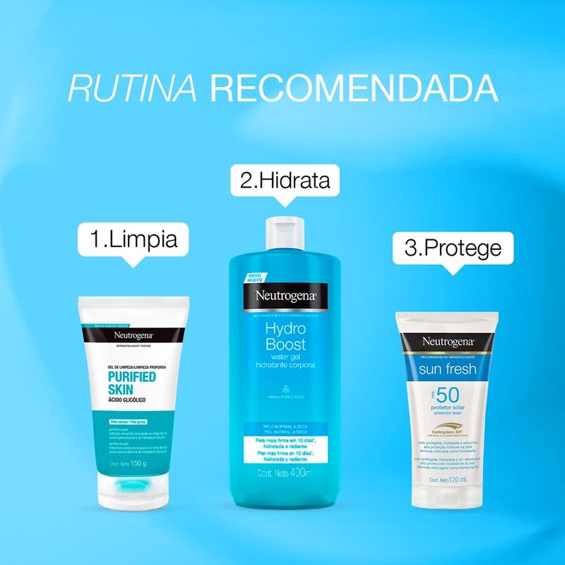 Hidratante corporal NEUTROGENA® Hydro Boost proporciona una piel más firme en 10* días además de una hidratación avanzada. (*Comprobado clínicamente con el uso del producto dos veces al día).