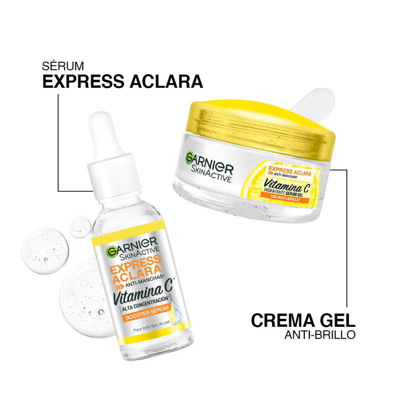 Sérum Antimanchas Garnier Express Aclara Vitamina C 30 ml: El booster sérum anti manchas de Express Aclara tiene activos concentrados para resultados rápidos y una textura ligera y de toque seco.