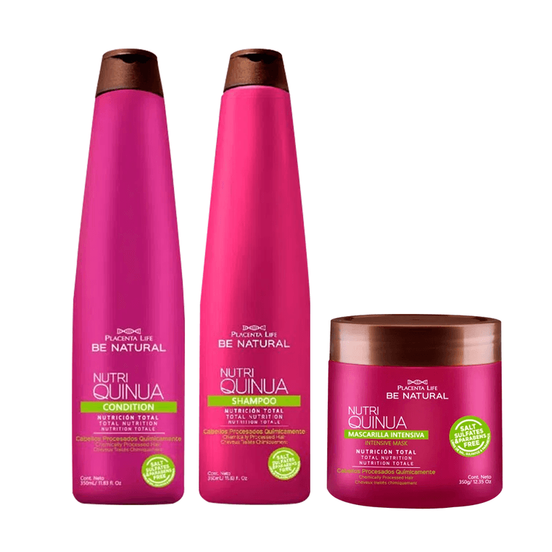 Pack Quinua Shampoo 350ml + Acondicionador 350ml + Mascarilla 350gr Placenta Life Be Natural