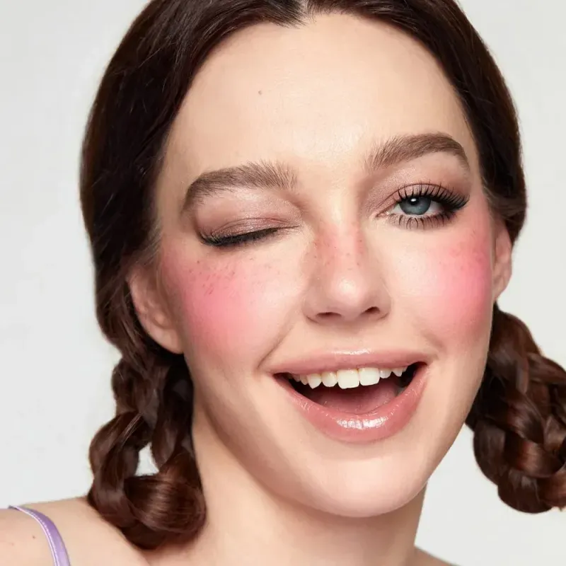 3. Difumina con movimientos circulares o ascendentes sobre la piel hasta que la textura en crema se asiente como un polvo suave para un rubor de aspecto natural.