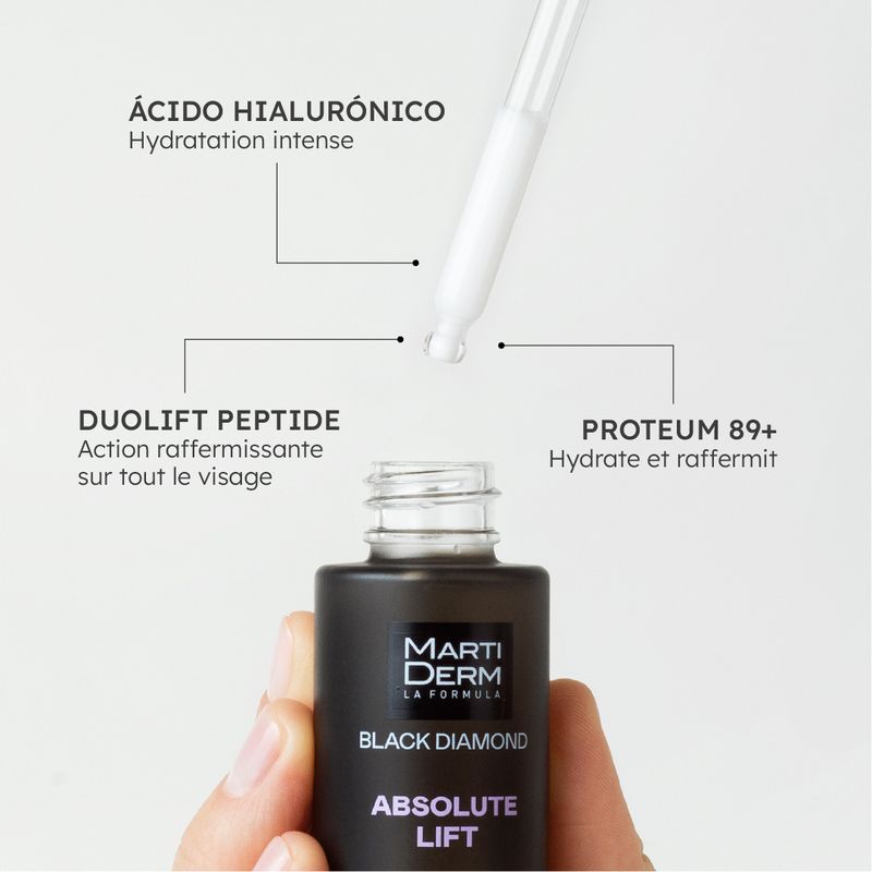 Sérum reafirmante global en emulsión fluida con efecto lifting inmediato y a largo plazo. Su exclusiva fórmula contiene Duolift Peptide, un complejo de péptidos de última generación que ayuda a reducir la apariencia de las arrugas y líneas de expresión, y a redefinir el óvalo facial. Y también con Proteum 89+, el proteoglicano exclusivo de MartiDerm, que reafirma e hidrata la piel en profundidad. Este sérum de absorción rápida proporciona una piel más lisa, elástica y firme.