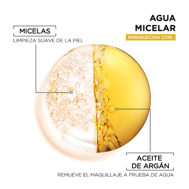 El agua micelar en aceite limpia, desmaquilla y nutre rostro, ojos y labios en un solo paso. Especial para desmaquillar maquillaje a prueba de agua.