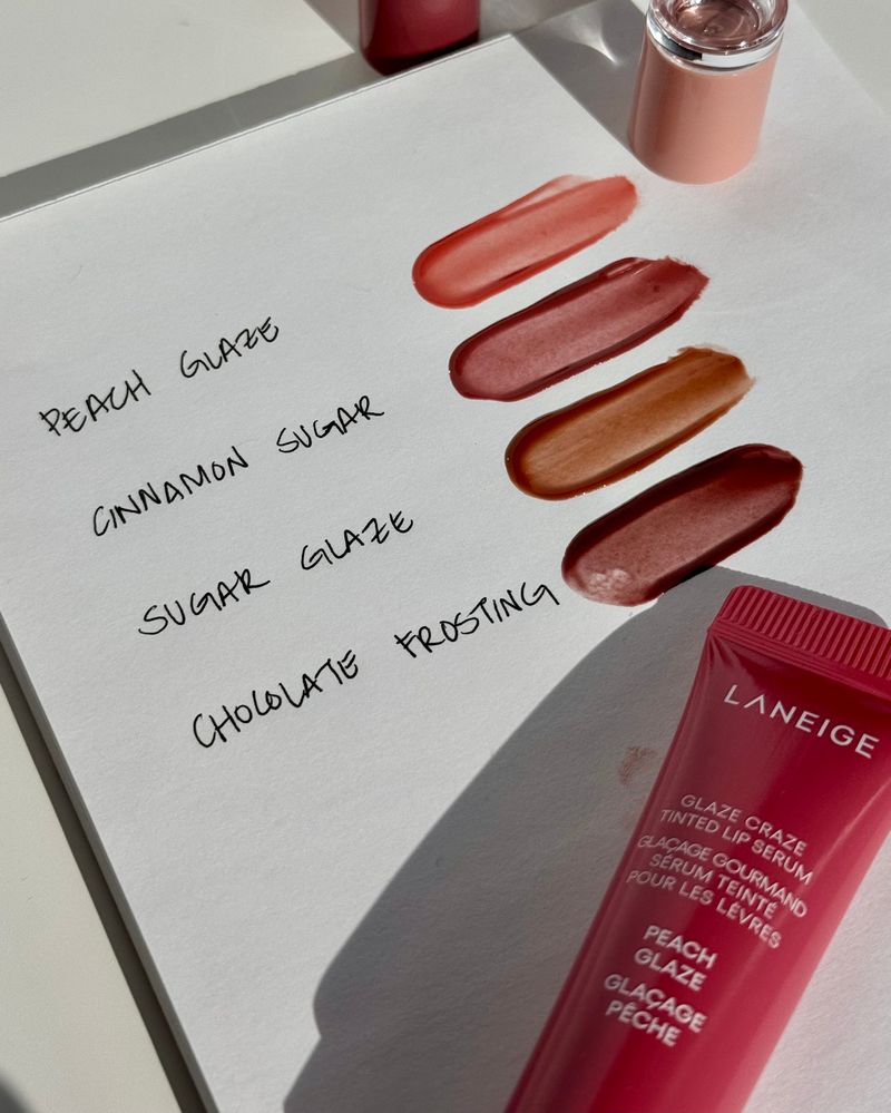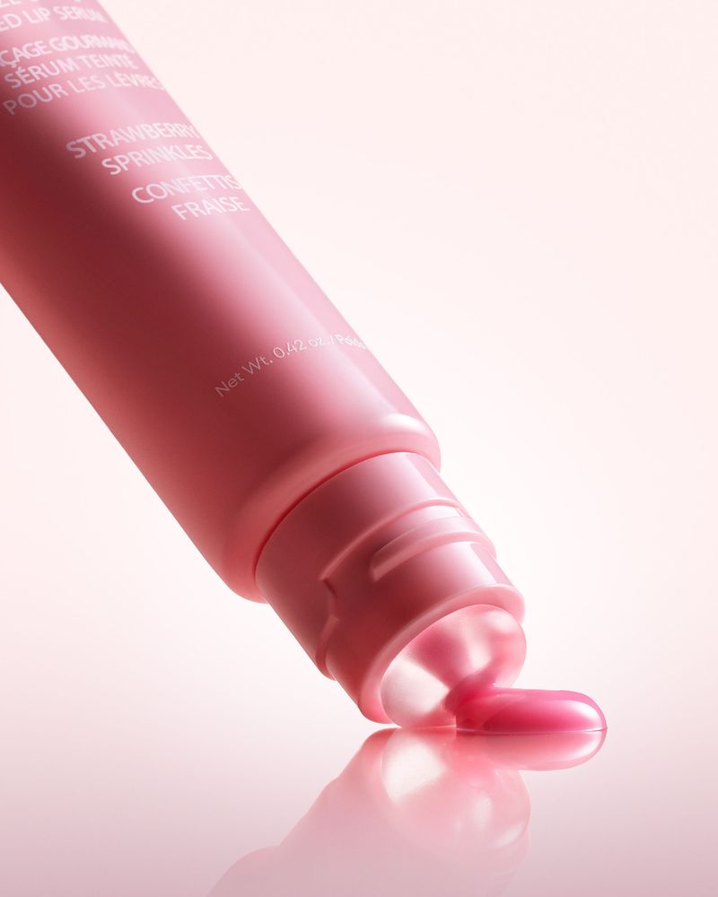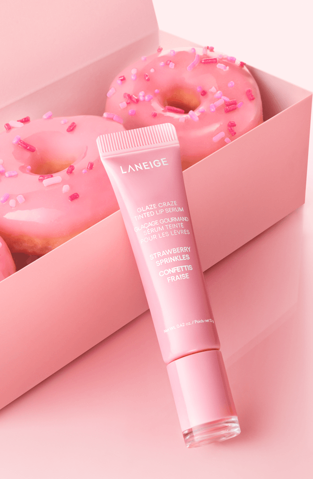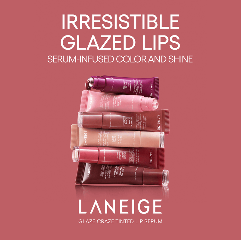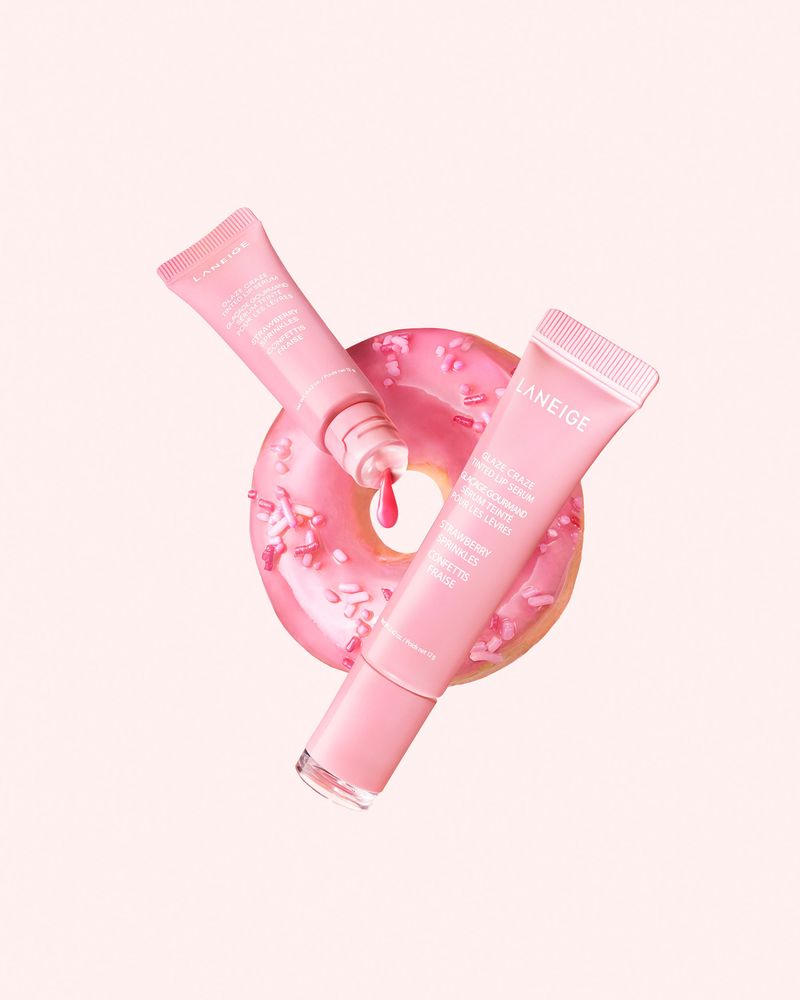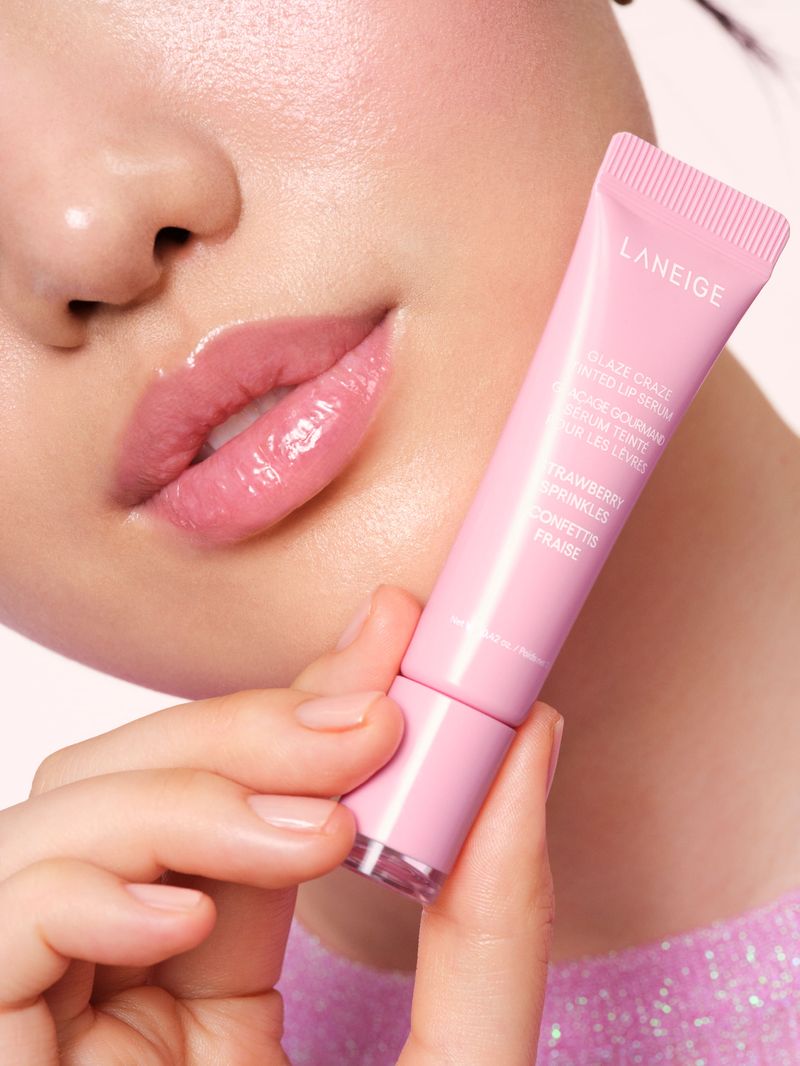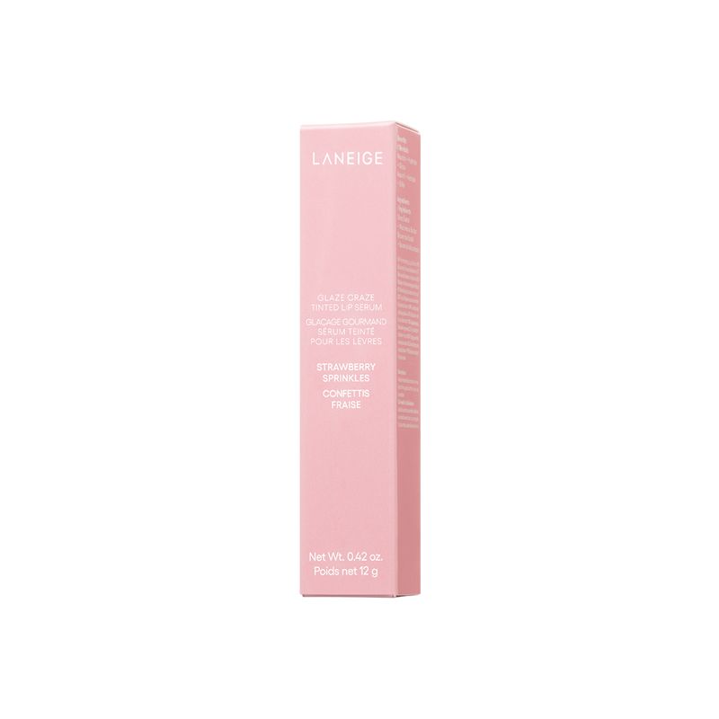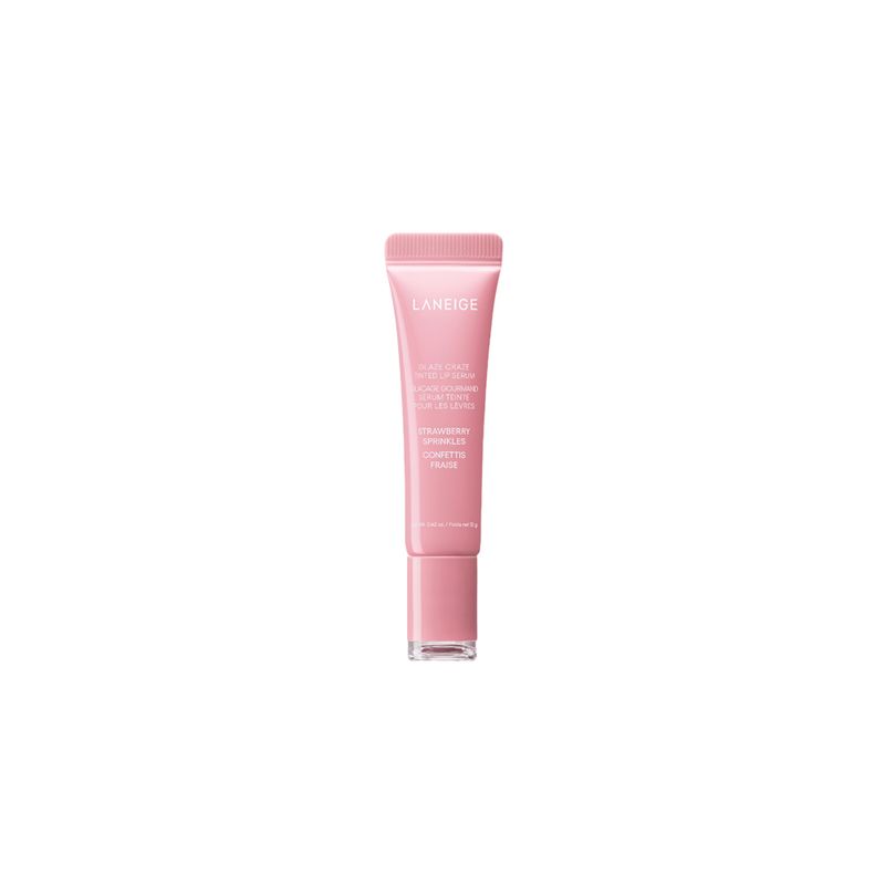 Tratamiento Para Labios Laneige Glaze Craze Tinted Lip Serum Strawberry Sprinkles 12 gr, que hidrata y realza, formulado con un 95 % de activos como argan‑ceramidas y polipéptidos que refuerzan la barrera de hidratación.
